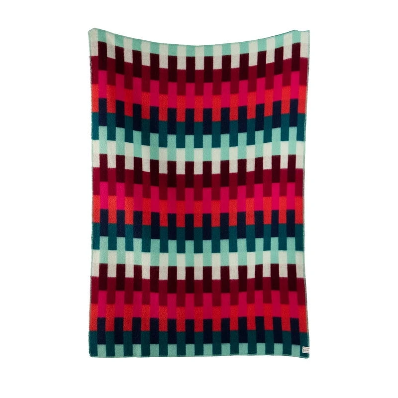 Der Åsmund Bold-Überwurf von Røros Tweed, der von Kristine Five Melvær entworfen wurde, vereint scharfe geometrische Formen mit leuchtenden, satten Farbtönen mit großem visuellem Effekt. Die Åsmund Bold-Serie wurde von Textilkunst und Wollteppichen beeinflusst, die in den Händen von Melvær einen zeitgenössischen Dreh erhalten haben.