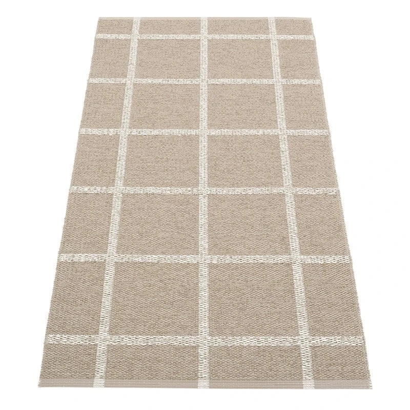 Ada Teppich 70 X 150 Cm, Dunkles Leinenbeige – Steingrau Metalli