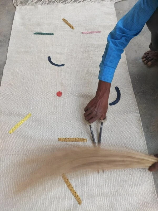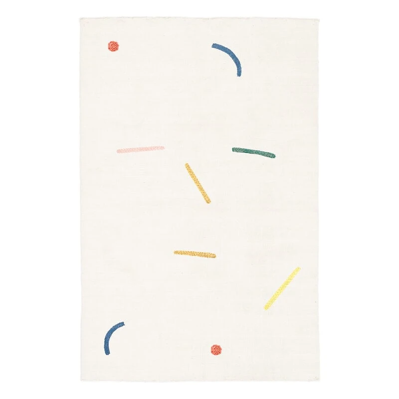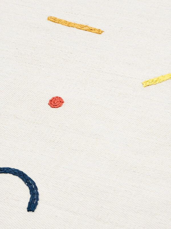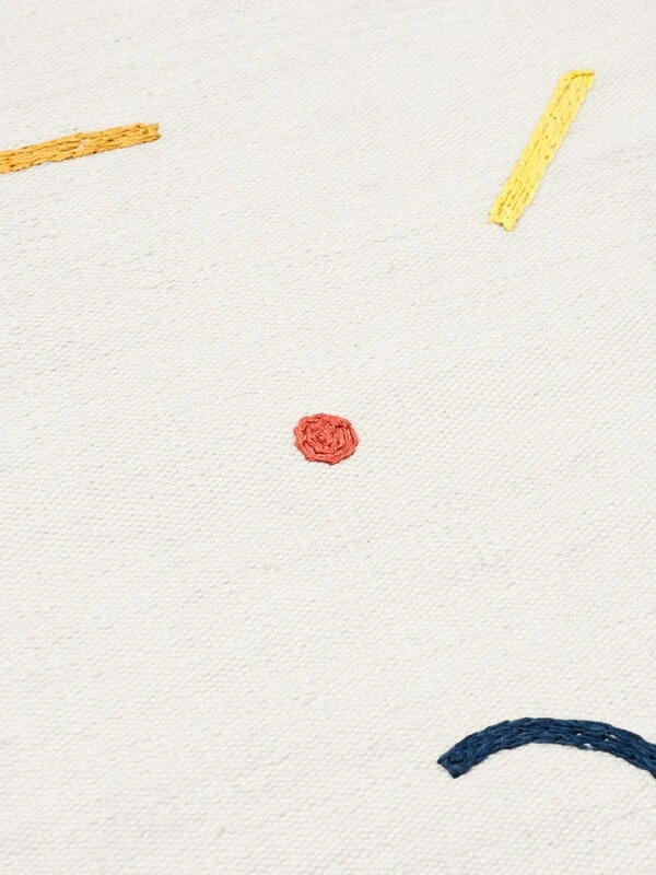 Der Ajattelija-Teppich wird in Indien handgefertigt, wobei das Muster sorgfältig von Hand gestickt wird. Obwohl der Teppich in Aussehen und Textur einem dicht gewebten Wollteppich ähnelt, besteht er in Wirklichkeit aus einem eher überraschenden Material: recycelten PET-Plastikflaschen. Dank des ausgeklügelten Materials ist der Teppich sehr langlebig, pflegeleicht und auch für den Außenbereich geeignet, sieht jedoch nicht wie ein Teppich für den Außenbereich aus. Er ist genauso gut für Innenräume, Balkone und Terrassen geeignet!