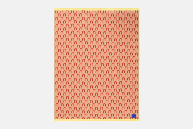 Die Arch-Decke von Hem ist eine gekonnte Kreation des Modedesigners Arthur Arbesser. Die Decke ist aus hochwertiger, superweicher neuseeländischer Lammwolle gewebt und beidseitig mit einem stilisierten grafischen Muster verziert. Der Druck ist von der Architektur inspiriert, insbesondere von Wien, der Heimatstadt des Designers. Die lebendige Farbpalette bringt Schwung in die Einrichtung und durch das lustige, wendbare Design freut sich das Auge gleich doppelt.