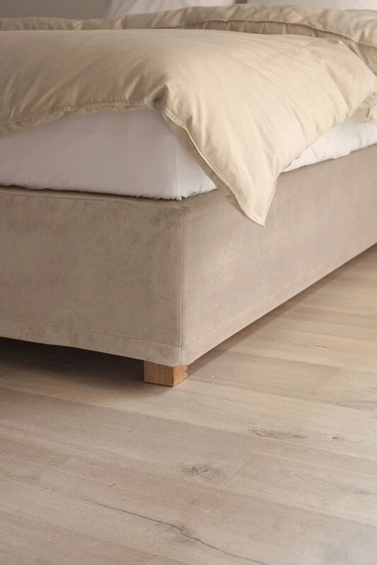 Base Skirt von Matri verleiht Ihrem Schlafzimmer den letzten Schliff und bietet eine minimalistische Alternative zum Bettvolant. Der gerade und schlichte Base Skirt verbirgt die Matratze, lässt aber die Beine des Bettes unbedeckt, wodurch er sich besonders gut für moderne Innenräume eignet. Der Bettvolant besteht aus dem Wooly-Gewebe von Matri, einer atmungsaktiven und schmutzabweisenden Wollmischung, die Komfort und Stil vereint und Ihrem Bett einen klassischen, eleganten Look verleiht.