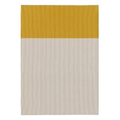 Die neutralen Farben und das minimalistische Design machen den Beach-Teppich leicht kombinierbar mit verschiedenen Einrichtungsstilen und Materialien. Der klassische Duochrom-Teppich ist mit zwei großen Farbflächen verziert und mit genähten Kanten und umgeschlagenen Enden versehen.