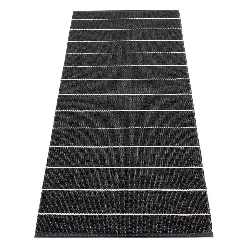 Der vom schwedischen Teppichhersteller Pappelina entworfene Teppich Carl kombiniert sanfte Pastellfarben mit geraden, grafischen Streifen. Der reizvolle Clou des Teppichs sind seine zwei Seiten: Der Teppich hat auf beiden Seiten unterschiedliche Farben, so dass Sie ihn einfach nur umdrehen müssen, um Abwechslung in Ihre Einrichtung zu bringen. Der aus phthalatfreiem PVC-Flachband gefertigte Teppich ist leicht zu reinigen und eine praktische Ergänzung in allen Räumen. Dank seiner schmalen Form eignet sich der Teppich gut als eindrucksvoller Flurläufer, Küchenteppich oder als Teppich für den Außenbereich. Der im schwedischen Dalarna hergestellte Teppich wurde mit traditionellen Techniken gewebt und ist in verschiedenen Farbkombinationen erhältlich.