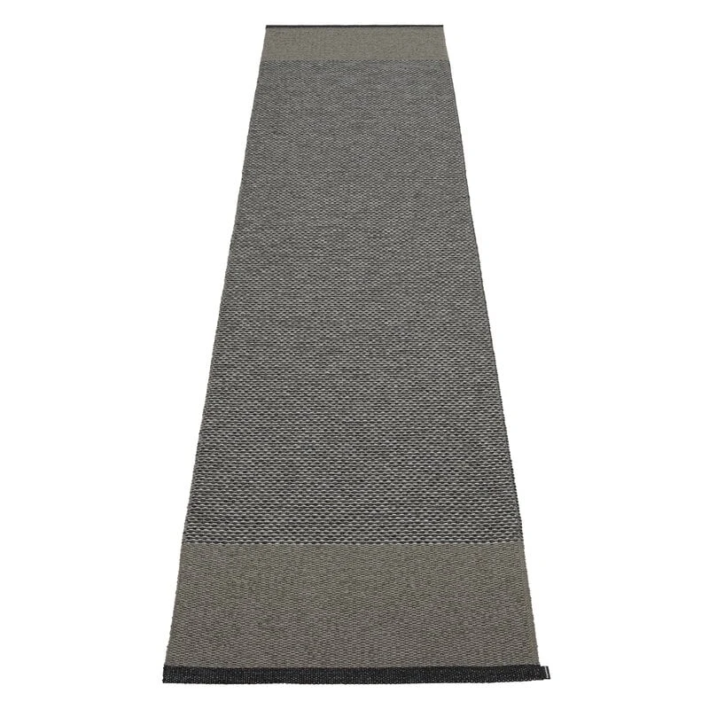 Der aus phthalatfreiem PVC-Flachband gefertigte Kunststoffteppich ist leicht zu reinigen und eine praktische Ergänzung in allen Räumen. Aufgrund seiner schmalen Form lässt sich der Teppich leicht als eindrucksvoller Läufer im Flur, in der Küche oder im Außenbereich verwenden. Der Edit-Teppich wird im schwedischen Dalarna unter Anwendung traditioneller Techniken gewebt.