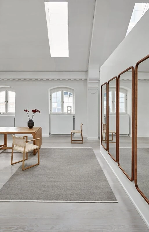Der Escape-Kelim-Teppich von massimo copenhagen verbindet traditionelle orientalische Teppichfertigungsverfahren mit skandinavischem Design. Der von Space Copenhagen entworfene, minimalistische Teppich ist nicht mit Mustern verziert, sondern erhält seinen charmanten Charakter durch den natürlichen Farbton der ungefärbten Wolle. Der dünne und leichte Teppich wird in Handarbeit mit traditionellen Webtechniken hergestellt, die jedem Escape-Kelim-Teppich sein eigenes, einzigartiges Aussehen verleihen. Der strapazierfähige Teppich verleiht dem Wohnambiente einen sanften, bodenständigen Charakter und ist auch für öffentliche Räume geeignet.