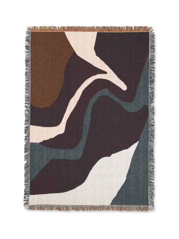 Die Vista-Decke von ferm LIVING ist mit einem abstrakten Muster verziert, das den Ausblick auf die Erde von oben zeigt. Durch eine spezielle Webtechnik wiederholen sich die schönen Farben von Vista als Melange-Variante auf der Rückseite der Decke. Lose Fransen geben dem lässigen Design der Vista-Decke den letzten Schliff.