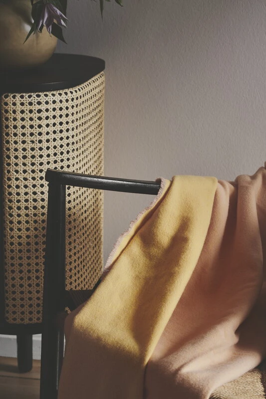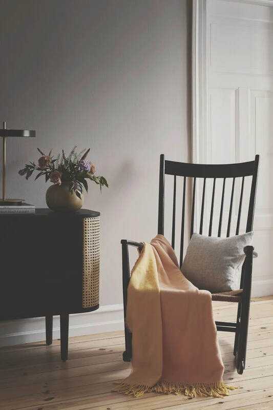 Die Franja-Decke des dänischen Textilunternehmens Silkeborg Uldspinderi besticht durch ihre herrlichen Farben und ihre angenehme Haptik. Die doppelseitige Decke hat auf beiden Seiten unterschiedliche Farben. Anders als bei den meisten Decken sind die Fransen an den Längsseiten angebracht. Die von Margrethe Odgaard entworfene Franja-Decke besteht aus einer Mischung aus feiner Wolle und Baby-Alpakawolle, die sie unglaublich warm, weich und leicht macht. Die Maße der Decke sind 170 x 140 cm.