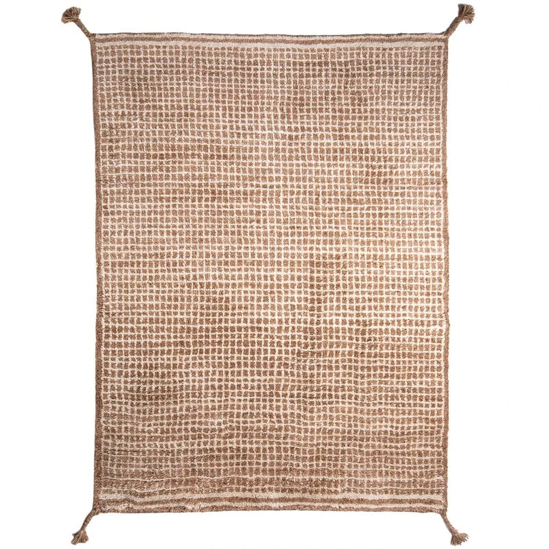 Der Grid-Teppich hat ein asymmetrisches Muster und geflochtene Wollfransen an jeder Ecke. Der weiche Grid-Teppich eignet sich perfekt für das Wohnzimmer oder den Lounge-Bereich und ist in verschiedenen Farben und Größen erhältlich.