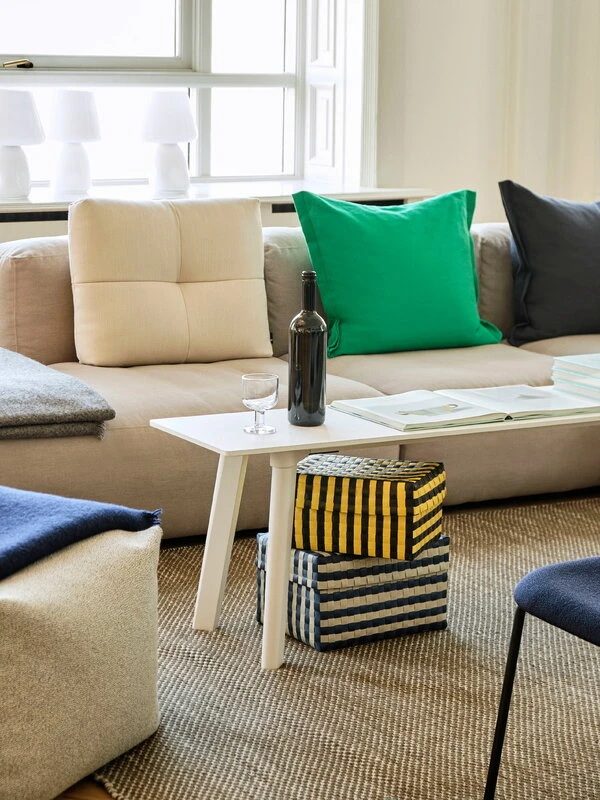 Der Moiré von HAY ist ein traditioneller Kelim-Teppich, der in Indien aus verschiedenen bunten Wollen von Hand gewebt wurde. Der Teppich ist eine stimmungsvolle Kombination aus der Wärme der Wolle, alten asiatischen Webtechniken und skandinavischem Design. Die rechteckigen Moiré-Teppiche sind an den Kanten versäubert und in unterschiedlichen Farbkombinationen erhältlich. Wählen Sie Ihr Lieblingsdesign aus oder kombinieren Sie mehrere Moiré-Modelle in unterschiedlichen Größen und Farben!