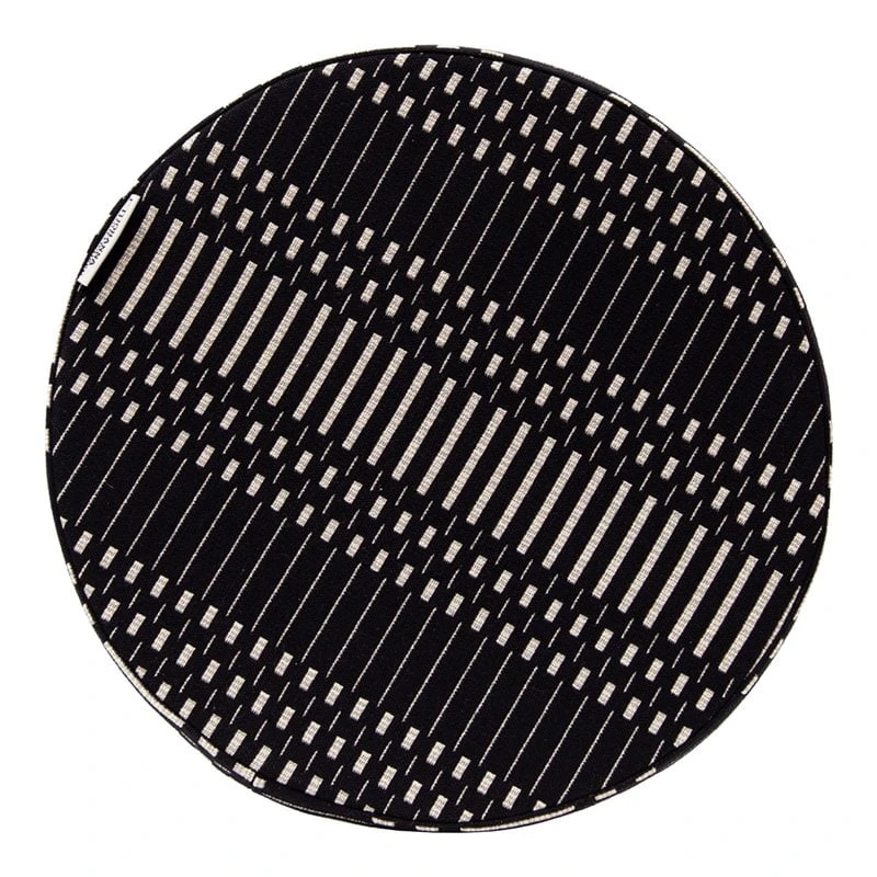 Helios Discushion von Johanna Gullichsen ist eine moderne Interpretation alter finnischer Webtraditionen. Das runde Sitzkissen passt perfekt zu unterschiedlichen Stühlen und Hockern, wie z. B. den Aalto-Hockern von Artek.