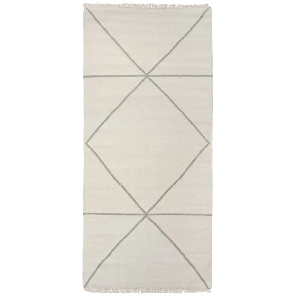 Aufgrund seiner schmalen Form lässt sich Keko leicht als eindrucksvoller Läufer im Flur oder als Bettvorleger verwenden.