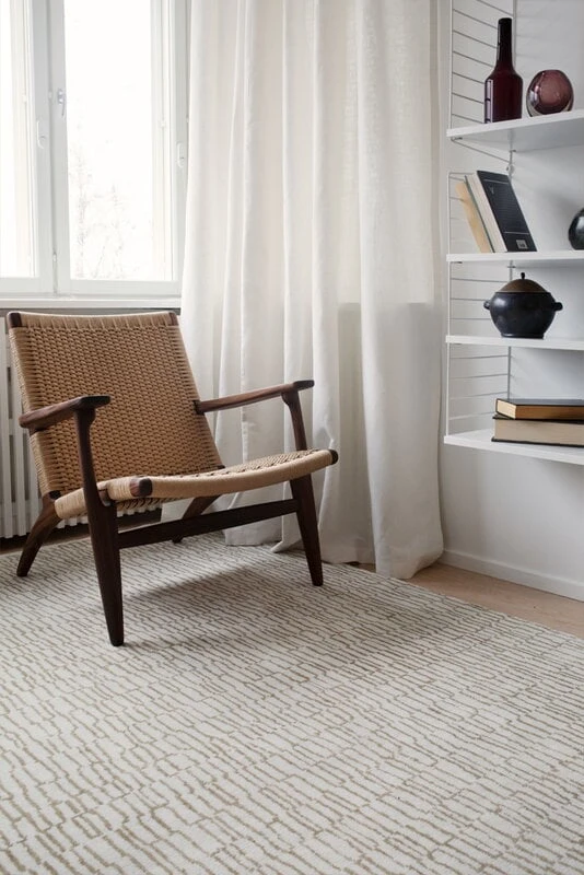 Der Ketju-Teppich ist Teil der Designer-Kollektion von Roots Living. Der von Ulla Koskinen entworfene Teppich aus Wolle und Bambus wird in Indien von Hand gewebt – eine schöne Kombination aus finnischem Design und indischer Handwerkstradition.