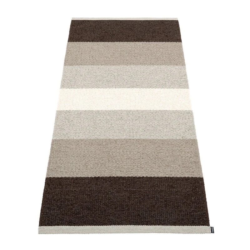 Der aus phthalatfreiem PVC-Band gefertigte Teppich ist sehr pflegeleicht und damit eine praktische Wahl für alle Räume, vom Kinderzimmer bis zur Küche. Dank seiner schmalen Form ist der Teppich auch ein idealer Flurläufer, und er kann sogar im Freien auf dem Balkon, der Veranda oder der Terrasse eingesetzt werden. Der im schwedischen Dalarna hergestellte Teppich wurde mit traditionellen Techniken gewebt und ist in mehreren Farbvarianten erhältlich.