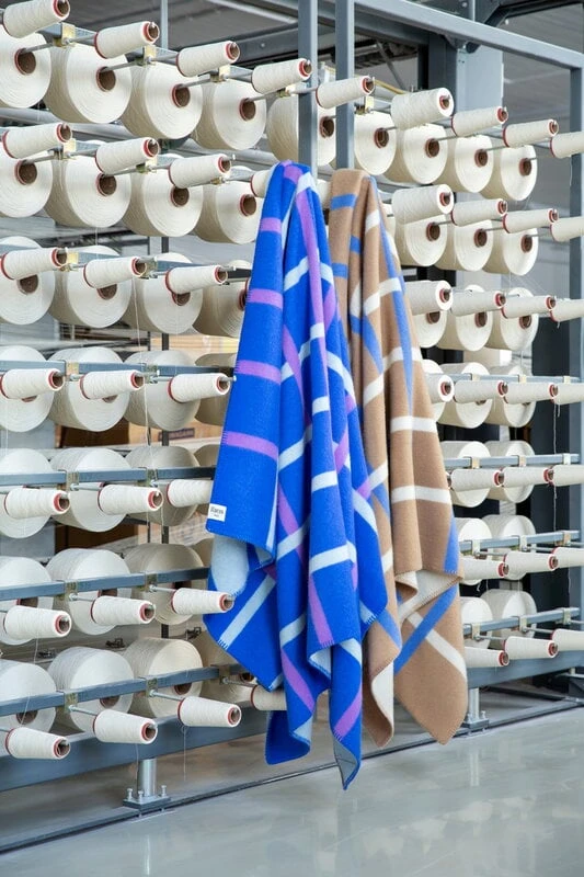 Der Knut-Überwurf von Røros Tweed, der von Hallgeir Homstvedt entworfen wurde, ist ein Genuss für alle Sinne. Das markante Muster der Wolldecke, das an eine optische Täuschung erinnert, wurde in Anlehnung an den Webprozess entworfen: Das Gittermuster steht für die vertikalen und horizontalen Garne oder Fäden des Gewebes. Um unsere visuelle Wahrnehmung weiter herauszufordern, hat sich Homstvedt für auffällige Farbkombinationen entschieden.