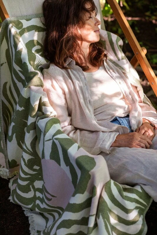 Die Kuutamo-Decke von Lapuan Kankurit besteht aus einer Mischung aus Merinowolle und Baumwolle, die sich auf der Haut luxuriös und weich anfühlt. Das von Saara Obele entworfene Muster der Decke ist von tropischen Nächten im Spätsommer inspiriert, wenn der Wald das warme Mondlicht filtert – „kuutamo“ bedeutet Mondlicht auf Finnisch. Die niedliche Decke ist genau das Richtige an kühlen Herbstabenden, eignet sich aber auch ideal als Picknickdecke an warmen Sommertagen.