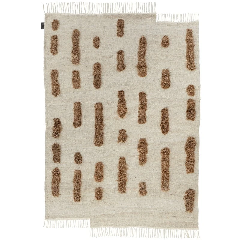 Das geknüpfte Muster hebt die flachgewebte Basis des Laine Teppichs hervor, und die asymmetrische Kante verleiht dem ansonsten schlichten Design eine originelle Wendung. Der Laine-Teppich ist in mehreren natürlichen Farbkombinationen erhältlich. Eine komplett geknüpfte Version des Teppichs ist ebenfalls erhältlich.