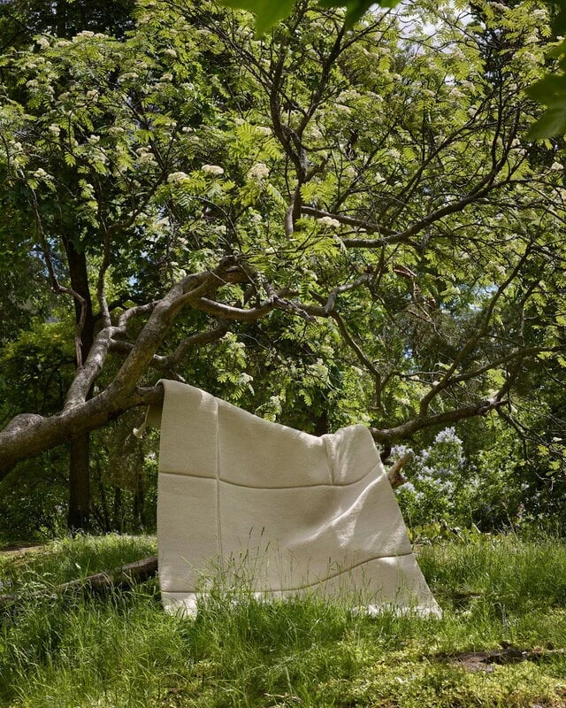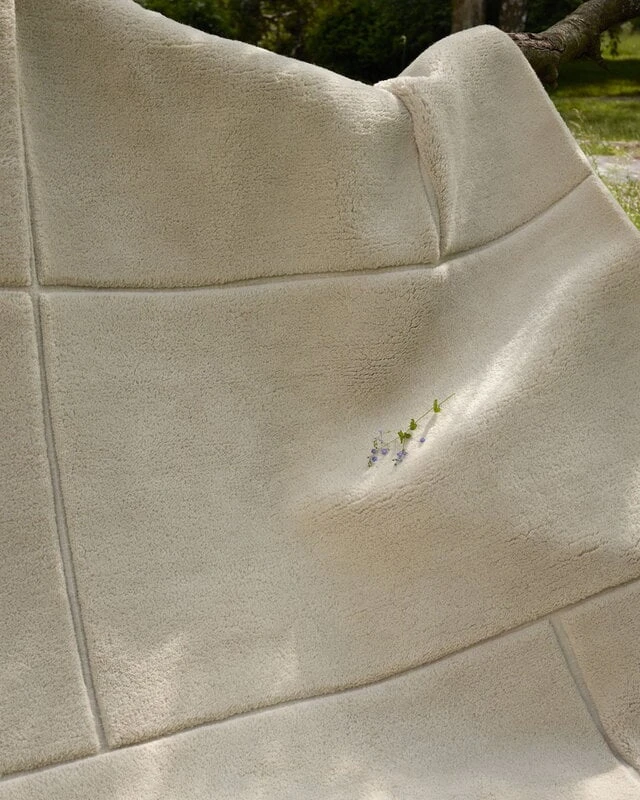 Der Line-Teppich ist Teil der Patchwork-Kollektion aus der ersten Produktgeneration der finnischen Teppichmarke Woven Works. Die von Anna Pirkola und Ina Nordbäck vom Studio Plenty entworfenen handgeknüpften Wollteppiche der Patchwork-Kollektion bestechen durch ihre minimalistischen, grafischen Muster und die angenehm weiche und wärmende Wolle. Die Teppiche werden in Indien aus neuseeländischer Wolle auf recycelter Baumwollkette gewebt.