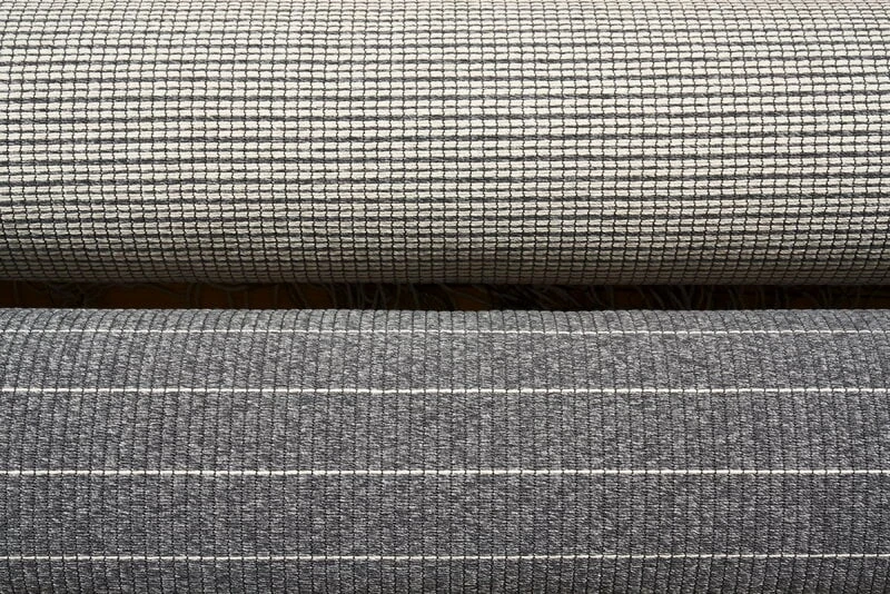 Der Line-In-Out-Teppich von Woodnotes besteht aus feuchtigkeits- und lichtbeständigem Polypropylen und ist besonders gut für Küchen und Kinderzimmer sowie Balkone, Terrassen und andere Außenbereiche geeignet. Der Line-Teppich eignet sich auch hervorragend für Poolbereiche oder Strandhäuser, da die Polypropylenfasern Chlor und Salzwasser trotzen.