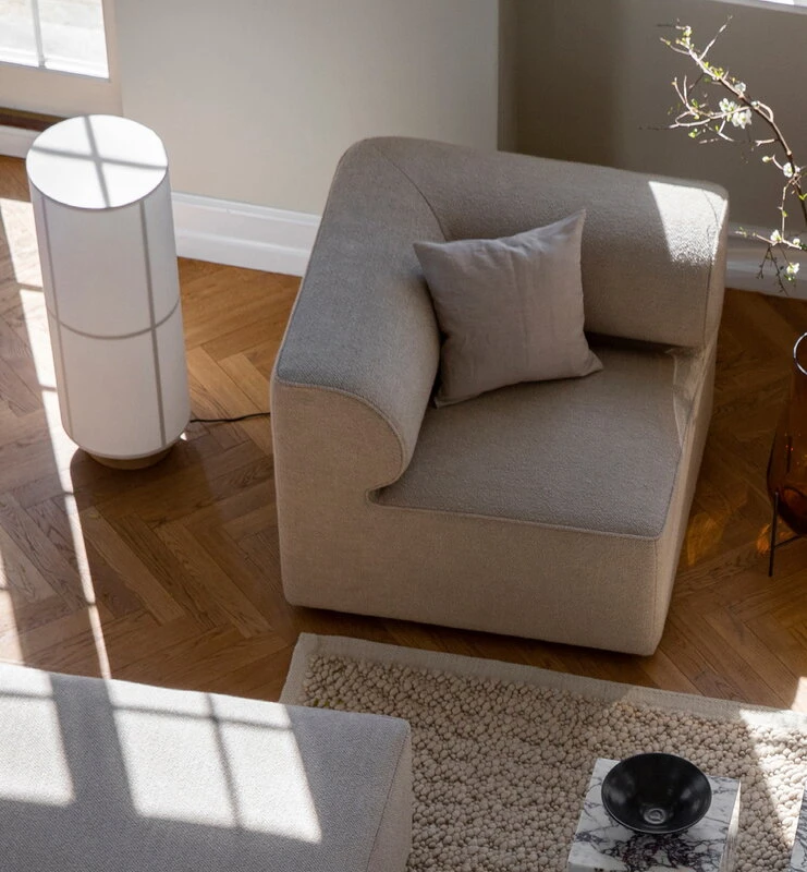 Das Mimoides-Kissen ist Teil der „Menu Cocoon Textile“-Kollektion, die von den Architekten Mathias Mentze und Alexander Ottenstein sowie der Textilexpertin Marie-Louise Rosholm entworfen wurde. Die Textilprodukte der Kollektion werden verantwortungsbewusst aus Monomaterialien hergestellt, so dass die Produkte oder ihre Materialien am Ende ihrer Lebensdauer problemlos weiter recycelt werden können: Der Bezug des Mimoides-Kissens besteht aus litauischem Leinen, das mit jedem Gebrauch und jeder Wäsche besser und weicher wird. Das Leinen ist garngefärbt, so dass der Farbton beim Waschen des Bezuges nicht ausbleicht. Das Innenkissen besteht aus recyceltem Polyester, das ursprünglich aus Plastikflaschen gewonnen wurde.