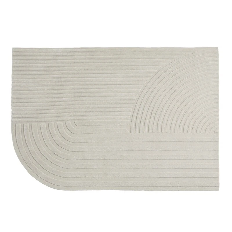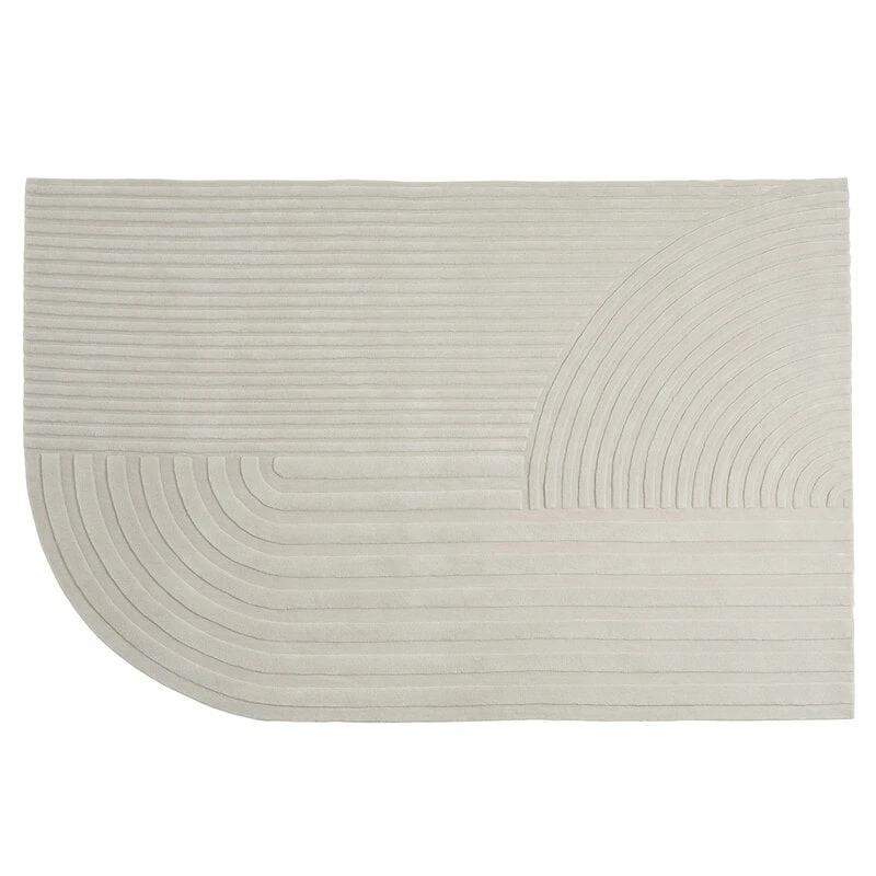 Der Relevo-Teppich von Muuto weist eine außergewöhnliche Form und ein lebhaftes Muster auf – er ist also garantiert ein Blickfang, egal ob auf dem Boden des Schlafzimmers oder im Wohnzimmer. Der Wollteppich wurde von dem italienischen Designstudio Studiopepe entworfen und ist vom skulpturalen Teppich der Land-Art-Kunstströmung inspiriert, die natürliche Materialien wie Erde, Steine und Wasser verwendet. Und so erinnern die grafischen Linien des Relevo-Teppichs tatsächlich an die gewundenen und geschwungenen Pfade auf der Erdoberfläche.