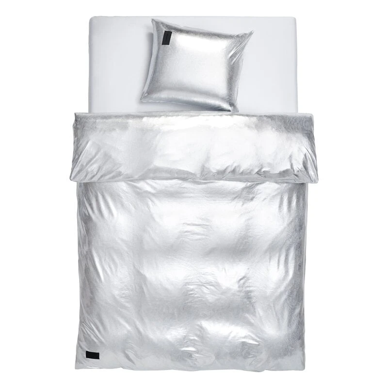Der Kissenbezug Nude Metallic Jersey von Magniberg verleiht dem Schlafzimmer einen Hauch von Discokugel-Glitzer und Pop-Art-Einflüssen. Die „Nude Metallic Jersey“-Bettwäsche ist aus Polyester und Elastan gefertigt, um ein dünnes, flexibles und extrem metallisches Finish zu erzielen. Der schillernde Glanz des Silbers zieht die Blicke auf sich und bringt Sie zum Lächeln.