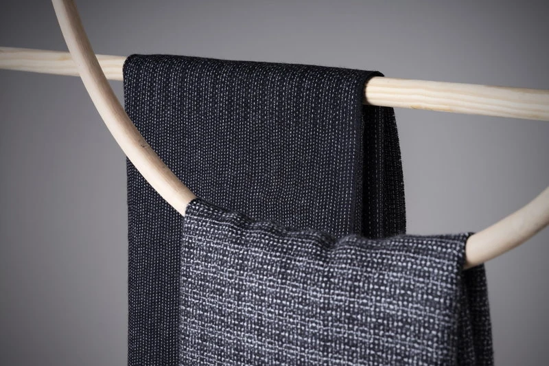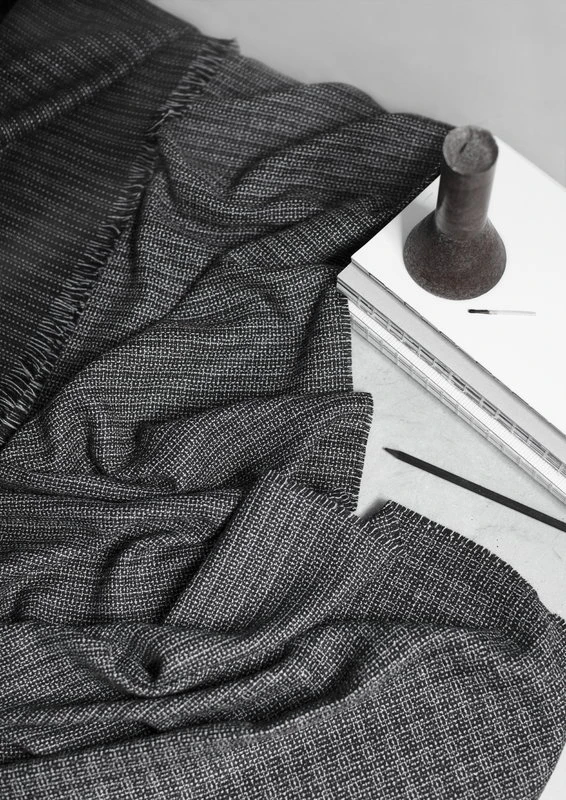 Der Pine-Überwurf von Silkeborg Ulspinderi ist aus hochwertiger Baby-Alpakawolle gefertigt. Alpakas haben sich an das raue Klima der Anden angepasst – deshalb ist ihre Wolle sehr atmungsaktiv und gleichzeitig warm, was sie ideal für Decken macht. Der schwarz-weiße Überwurf wurde von der dänischen Textilkünstlerin Karin Carlander entworfen.