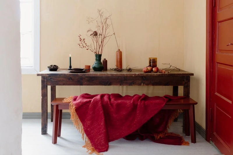 Revontuli Mohairdecke, Rostorange – Bordeauxrot