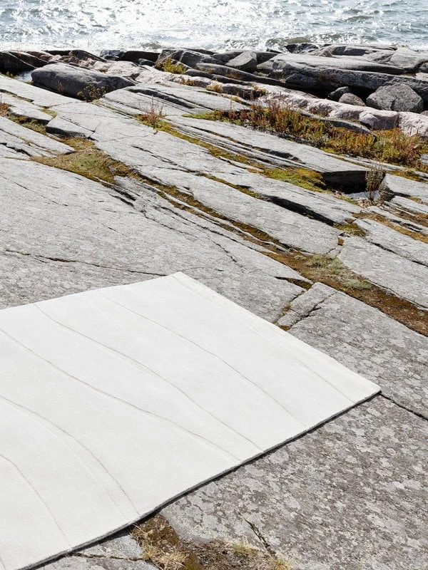 Der Rock-Teppich von Roots Living ist von den finnischen Schären und der Ostsee inspiriert. Die schlichten, organischen Linien, die den Teppich verzieren und auf einer handgezeichneten Skizze der Designerin Joanna Laajisto basieren, erinnern an die natürlichen Muster, die an den felsigen Küsten der Inselgruppe zu sehen sind. Der Rock-Teppich ist handgefertigt aus Wolle und Bambusviskose. Sein Flor wurde asymmetrisch geschnitten, um das schöne Muster zu betonen. Der ultraweiche Teppich ist perfekt für Schlaf- oder Wohnzimmer.