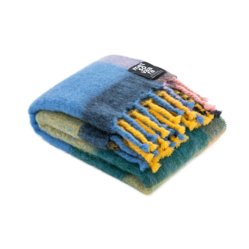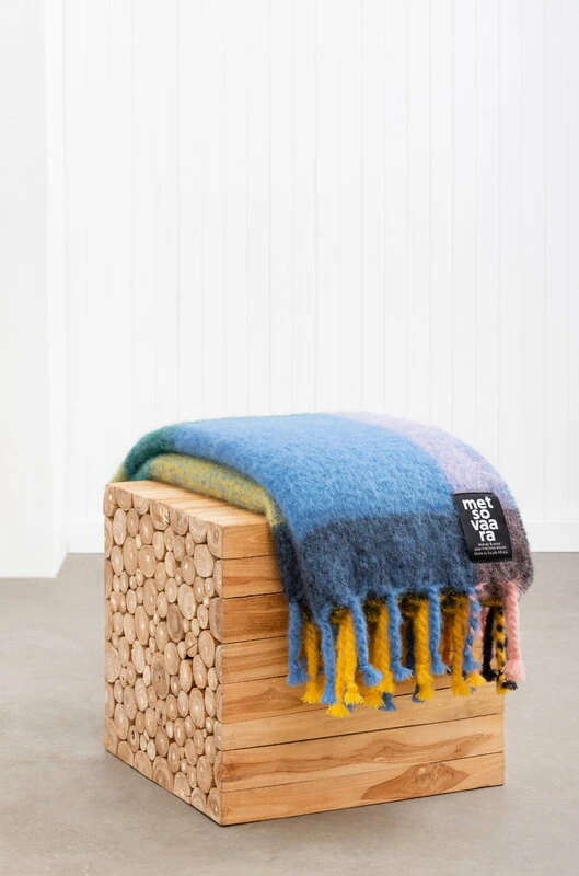 Der Satakieli-Überwurf von Metsovaara besticht durch eine kräftige Farbgebung, die alle Blicke auf sich zieht: Das Karomuster besteht aus Gelb-, Blau- und Grüntönen sowie einem Hauch von Rosa. Die mit den typischen Metsovaara-Fransen verzierte Decke wurde ursprünglich in den 1960er-Jahren entworfen. Der Name Satakieli bedeutet übersetzt „Nachtigall“.