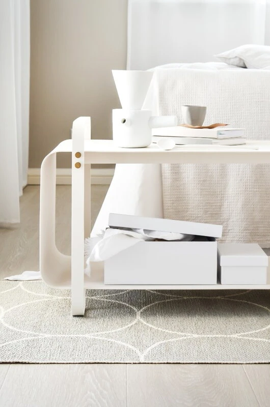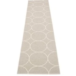 Die Boo-Kunststoffteppiche von Pappelina sind mit großen, grafischen Kreisen verziert. Sie werden auf einem traditionellen Webstuhl in Dalarna, Schweden, hergestellt. Die Teppiche sind wendbar und haben auf der anderen Seite ein entgegengesetztes Muster. Die aus phthalatfreiem PVC-Band hergestellten Teppiche sind langlebig und pflegeleicht. Sie passen mit ihren stilvollen zweifarbigen Mustern gut zu unterschiedlichen Einrichtungen. Dank seiner schmalen Form eignet sich der Teppich gut als eindrucksvoller Flurläufer, Küchenteppich oder als Teppich für den Außenbereich. Die Boo-Teppiche sind mit verschweißten Enden und einem geprägten Pappelina-Logo versehen.