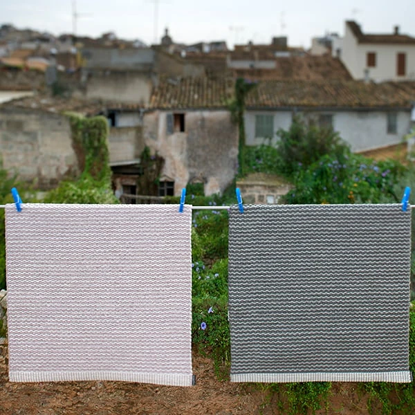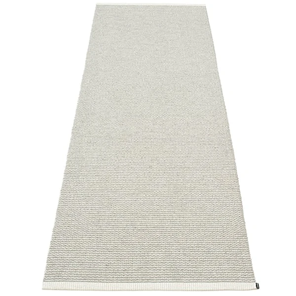 Die Kunststoffteppiche Mono von Pappelina werden auf einem traditionellen Webstuhl in Dalarna, Schweden, gewebt. Die aus phthalatfreiem PVC-Band hergestellten Teppiche sind langlebig und pflegeleicht. Sie passen mit ihren stilvollen zweifarbigen Mustern gut zu unterschiedlichen Einrichtungen. Dank seiner schmalen Form eignet sich der Teppich gut als eindrucksvoller Flurläufer, Küchenteppich oder als Teppich für den Außenbereich. Die Mono-Teppiche haben doppelt gefaltete Enden und ein eingenähtes Gummilabel.