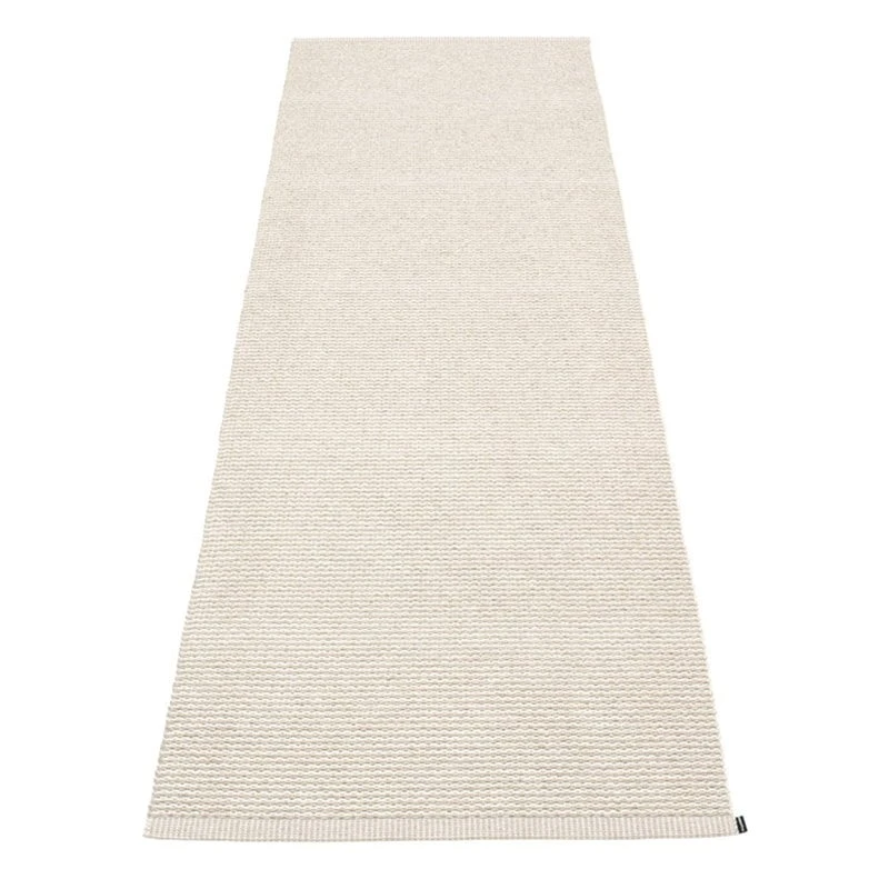 Die Kunststoffteppiche Mono von Pappelina werden auf einem traditionellen Webstuhl in Dalarna, Schweden, gewebt. Die aus phthalatfreiem PVC-Band hergestellten Teppiche sind langlebig und pflegeleicht. Sie passen mit ihren stilvollen zweifarbigen Mustern gut zu unterschiedlichen Einrichtungen. Dank seiner schmalen Form eignet sich der Teppich gut als eindrucksvoller Flurläufer, Küchenteppich oder als Teppich für den Außenbereich. Die Mono-Teppiche haben doppelt gefaltete Enden und ein eingenähtes Gummilabel.