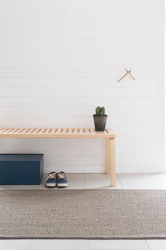 Der Teppich Panama des finnischen Herstellers VM Carpet zeichnet sich durch eine raue, strapazierfähige Oberfläche aus, die aus natürlichem Sisal gewoben ist. Der Teppich Panama ist ideal für Flure, Gänge und öffentliche Räume. Er verfügt über eine schmutzabweisende Oberflächenbeschichtung und eine rutschfeste EVA-Rückseite. Das recycelbare und geruchsneutrale Material der Rückseite ist für alle Bodenarten geeignet, auch für Strahlungsheizung. Der Teppich wird in der VM Carpet-eigenen Teppichfabrik im finnischen Dorf Karvala hergestellt.