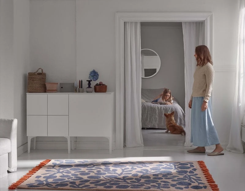 Der Teppich Terttu, der von Eri Shimatsuka für Finarte entworfen wurde, spiegelt die Atmosphäre der finnischen Wälder wider, in denen es eine Fülle von Waldbeeren gibt. Der aus neuseeländischer Wolle handgeknüpfte Teppich ist eine faszinierende Kombination aus luxuriösen Materialien und einem ausgeprägten Boheme-Muster, das mit bunten Fransen abgeschlossen wird. Der Terttu-Teppich wurde zur Feier des 100-jährigen Jubiläums der diplomatischen Beziehungen zwischen Finnland und Japan entworfen und thematisiert Dinge, die in beiden Ländern geschätzt werden: Natur, traditionelles Handwerk und die Schönheit des Alltags.