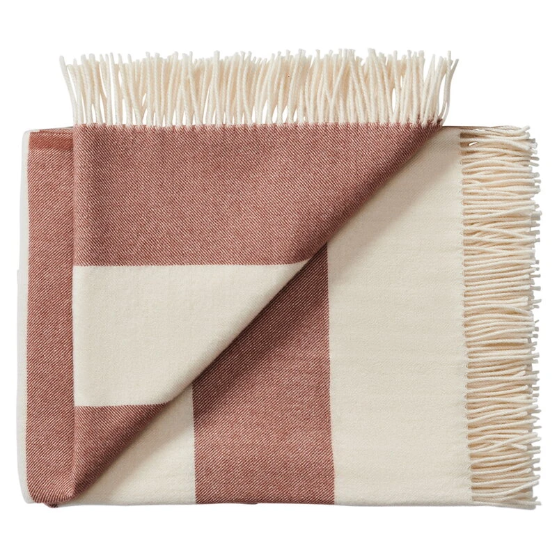 Die The-Sweater-Decke des dänischen Textilunternehmens Silkeborg Uldspinderi fühlt sich an wie Ihr Lieblingspullover. Die von Stilleben entworfene Sweater-Decke besticht durch ein einfaches, pastellfarbenes Streifenmuster mit Fransen an den Enden. Die Decke ist 130 x 190 cm groß und besteht zu 100 % aus Wolle, was sie schön warm und besonders strapazierfähig macht.