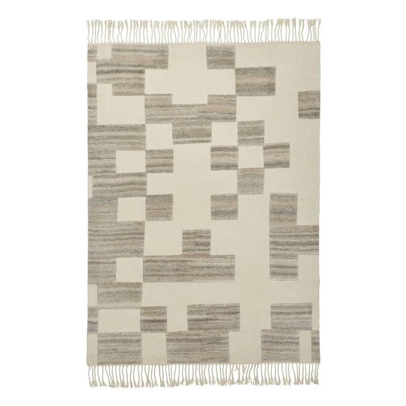 Der Tofuku-Wollteppich wird in Indien aus feinem, ungefärbtem Wollgarn handgefertigt. Der Teppich besticht durch ein hübsches, asymmetrisches Schachbrettmuster, das durch die Kombination verschiedener Garntöne und unterschiedlicher Florhöhen entsteht. Das Garn ist ungefärbt, was für eine Vielzahl von Farbnuancen sorgt und das authentische, natürliche Aussehen noch unterstreicht. Dank des Herstellungsverfahrens ist jeder Teppich ein wenig anders, was die natürliche Schönheit des Materials und das Kunsthandwerk betont.