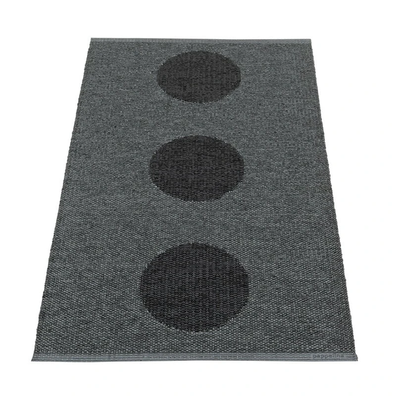 Der Vera-2.0-Teppich von Pappelina ist mit einem Muster aus großen Punkten versehen, die ein schlichtes, aber dennoch gewagtes Flair und einen sanften Metallic-Glanz in jedes Interieur bringen. Sein zweiseitiges Design eröffnet mehr Gestaltungsmöglichkeiten: Drehen Sie den Teppich einfach um, wenn Sie Lust auf eine neue Farbe haben. Der Teppich ist an den Rändern verstärkt und verschweißt und kann mit der Hand oder in der Waschmaschine gewaschen werden.