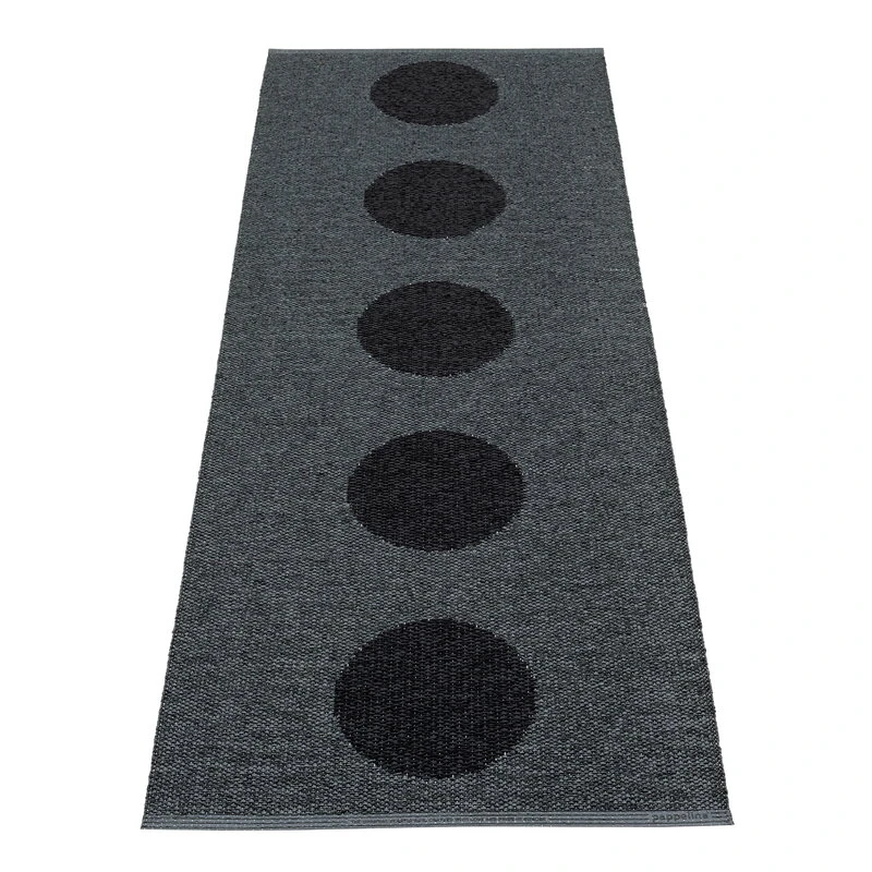 Der Vera-2.0-Teppich von Pappelina ist mit einem Muster aus großen Punkten versehen, die ein schlichtes, aber dennoch gewagtes Flair und einen sanften Metallic-Glanz in jedes Interieur bringen. Sein zweiseitiges Design eröffnet mehr Gestaltungsmöglichkeiten: Drehen Sie den Teppich einfach um, wenn Sie Lust auf eine neue Farbe haben. Der Teppich ist an den Rändern verstärkt und verschweißt und kann mit der Hand oder in der Waschmaschine gewaschen werden.